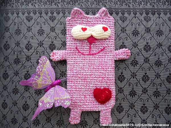 Вязанный крючком чехол на телефон.