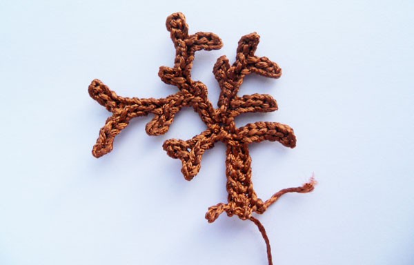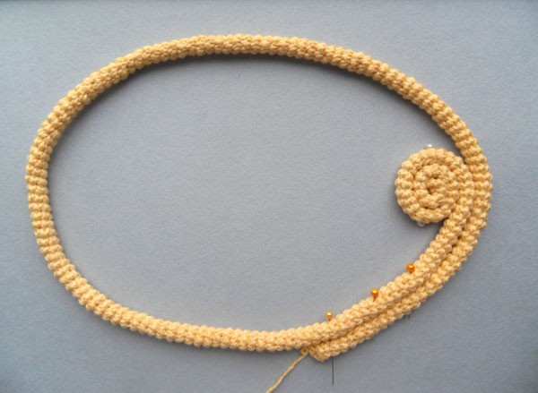 5. Снова формируем бусы с завитком, сшиваем их тонкой (катушечной) ниткой. Начинаем декорирование. Вяжем элемент, который я назвала «Дерево жизни».