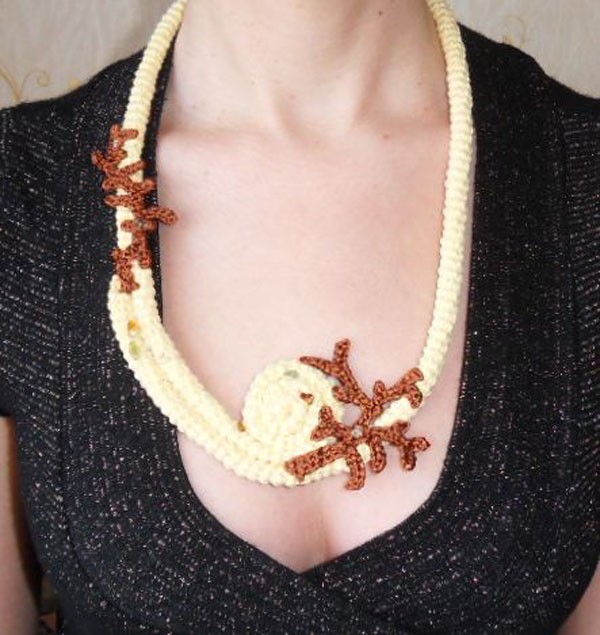 Такие бусы-колье, связанные крючком, под силу даже начинающей мастерице. Работа доставит истинное удовольствие: просто, оригинально, стильно.