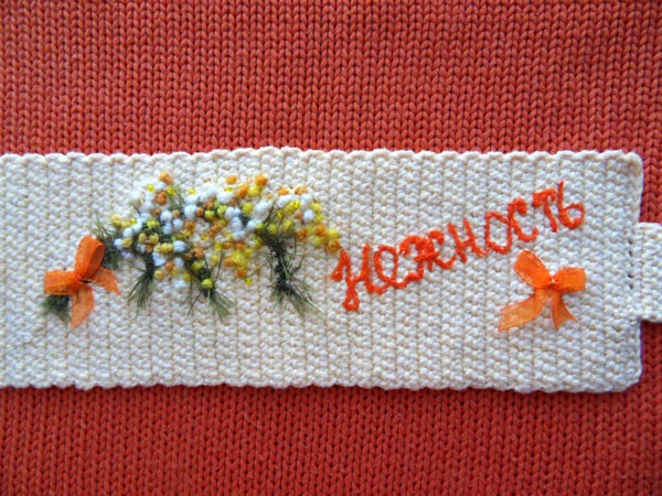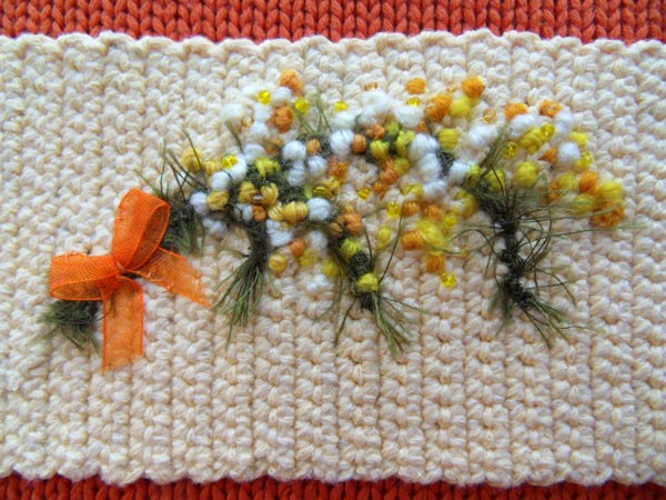 2. Приступаем к декорированию: вышиваем веточку мимозы.