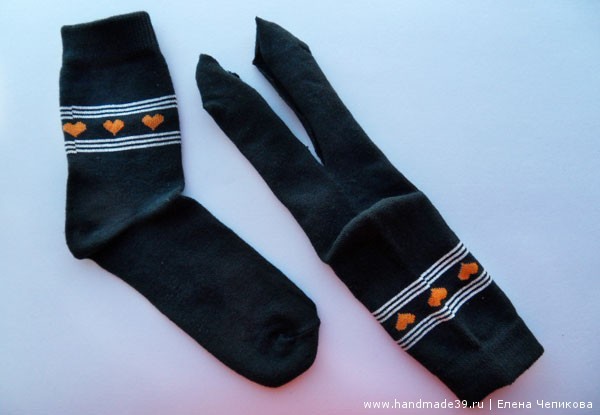 1. Берём носки, лучше яркой расцветки, с интересным рисунком (приветствуются контрастные полоски, цветочки, сердечки и т.д.) Возможен и однотонный, «спокойный» вариант.