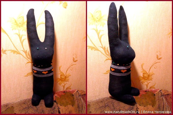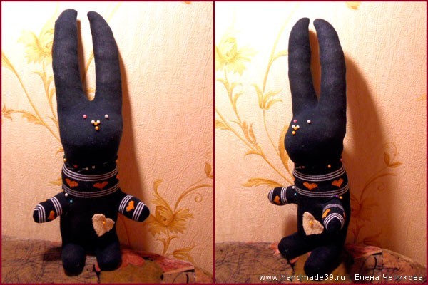 6. Окончательно проверяем плотность набивки игрушки. Я, например, сделала нижнюю часть зайца толще, чем задумывалось изначально. Во-первых, так заяц стал гораздо устойчивее. Во-вторых, у игрушки появился характер.