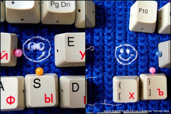6. Если есть необходимость, начинаем декорировать «пустые пространства». Я решила вышить весёлые смайлики.