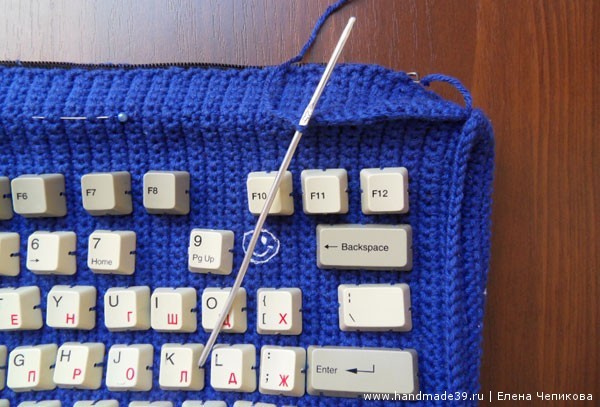 7. Самая кропотливая часть работы: пришиваем тонкой иглой каждую клавишу с четырёх сторон.