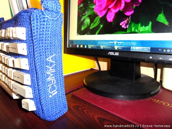 Чехол связан крючком 2,5 мм. Можно вязать и спицами.