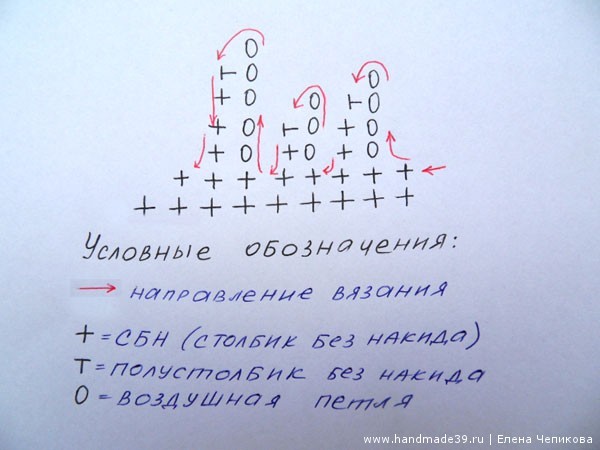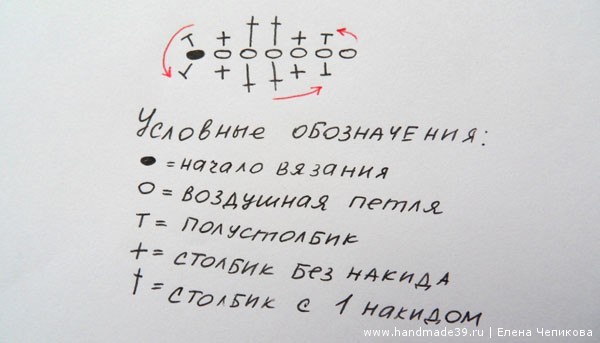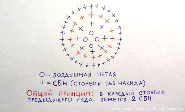 Далее начинаем вязать по кругу, руководствуясь схемой: