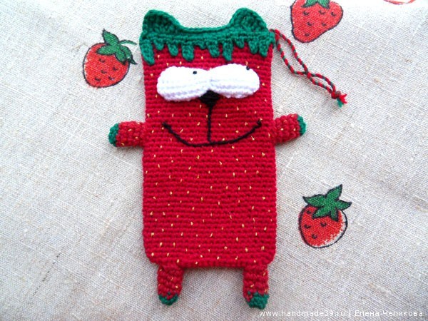 Вязаные чехлы для мобильного телефона с аппликацией. Внутренняя кнопка.
