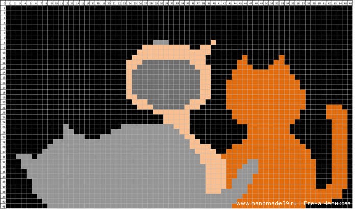 Да, не удивляйтесь! В процессе вязания я решила вернуться к первоначальному расположению хвостов и схему изменила: у рыжего кота хвост загнула в другую сторону, у серого кота хвост вообще убрала (он потом появится!), у кота посередине нос тоже убрала (решила потом вышить). Вот так я вяжу!